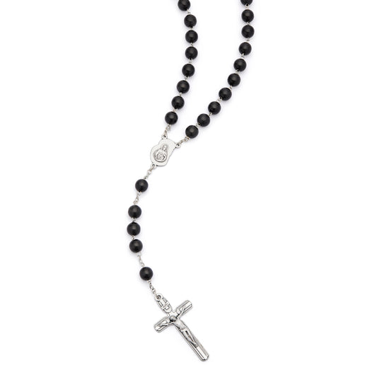 Rosario en Madera Negra y Crucifijo con Cuerpo de Cristo en Metal