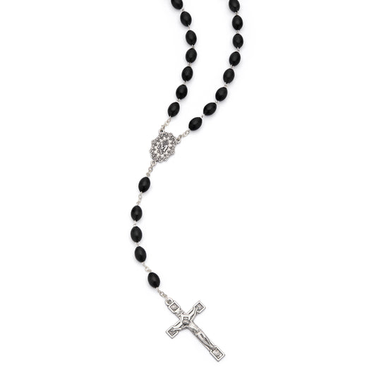 Rosario de la Virgen María con Cuentas de Madera Negra