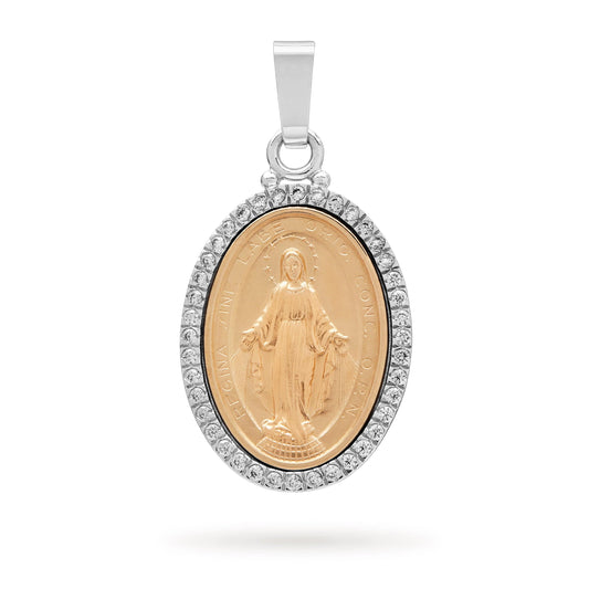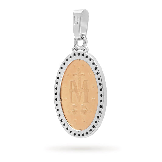 Medalla en Oro Blanco Oval de la Virgen Milagrosa