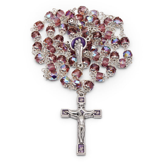 Rosario tradicional de Nuestra Señora de la Salud en cuentas de cristal facetado