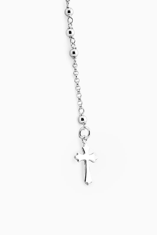 Collar Rosario De Plata Con Cuentas Rosa Claro