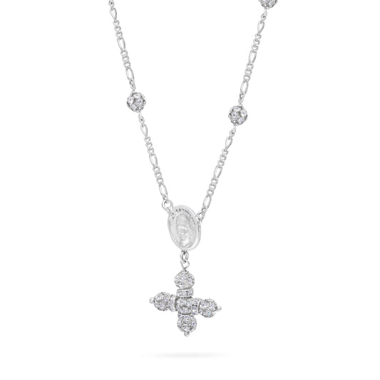ROSARIO DE PLATA VIRGEN MILAGROSA CON PERLA SINTÉTICA