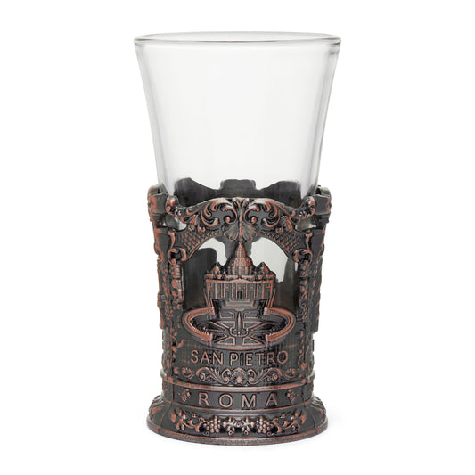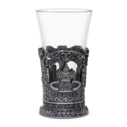 Vaso De Chupito Souvenir De Vidrio Con Base De Metal De Tono Dorado Con Basílica De San Pedro Y Coliseo