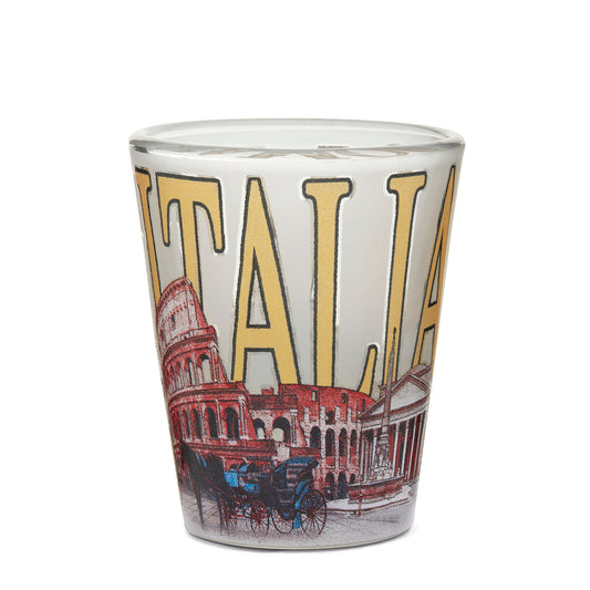 Vaso De Chupito Souvenir Satinado Con Los Monumentos De Roma Y Comidas Tradicionales