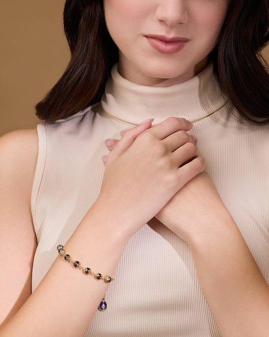 Pulsera Rosario En Tono Dorado Con Cuentas De Cristal Violeta En Forma De Globo
