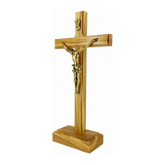 Crucifijo De Mesa De Madera De Olivo Con Cuerpo Dorado