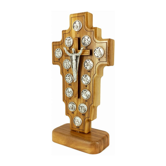 Crucifijo De Mesa De Madera De Olivo De Cristo Resucitado Con Via Crucis
