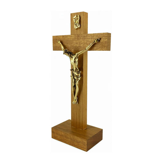 Crucifijo De Mesa De Madera Con Cuerpo Dorado