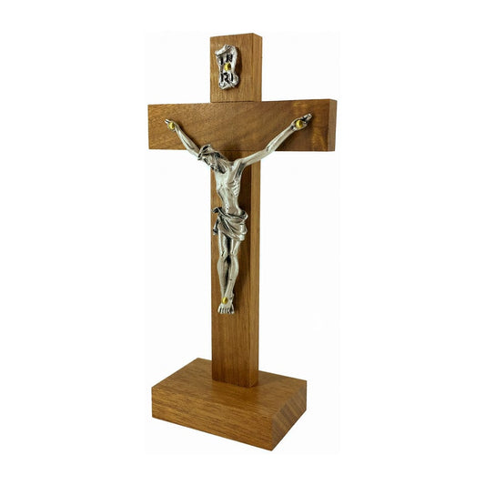 Crucifijo De Mesa De Madera Con Cuerpo Plateado