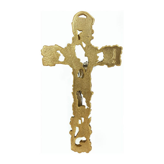 Crucifijo De Metal Dorado Con Uvas Y Sarmientos De Vid