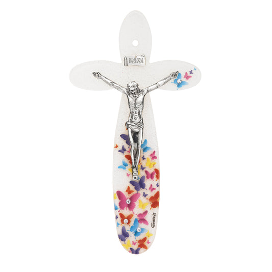 Crucifijo Redondeado De Vidrio Veneciano Con Mariposas