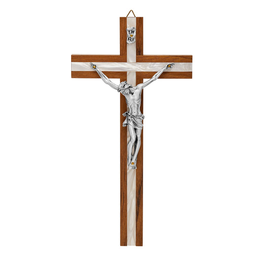 Cruz De Madera De Nogal Con Incrustaciones De Nácar