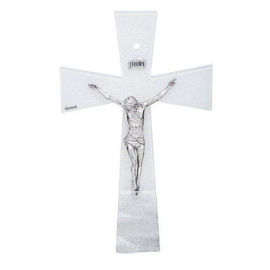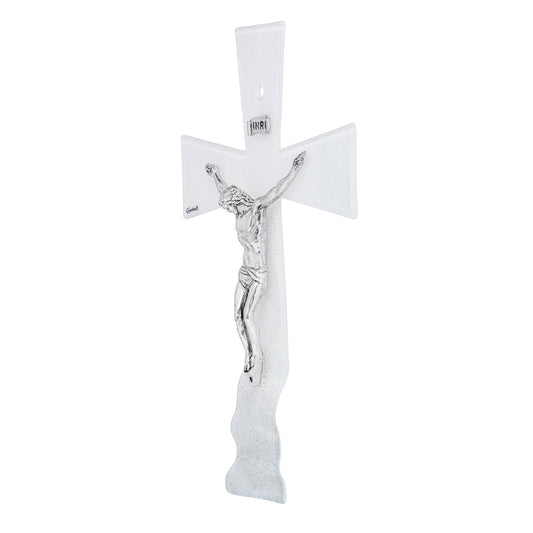 Crucifijo Blanco Ondulado De Vidrio Veneciano