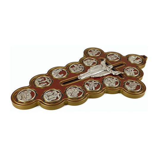 Crucifijo De Madera Roja De Cristo Resucitado Con Via Crucis