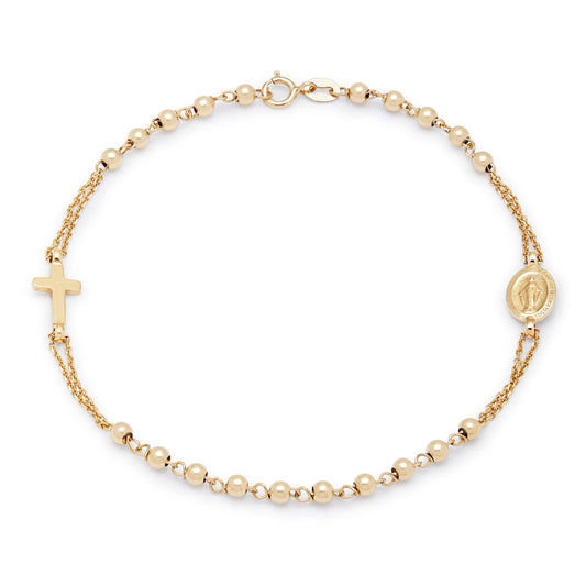 Pulsera Rosario De Oro Amarillo Con Medalla Milagrosa Y Cruz Colgante
