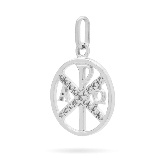 Medalla Chi Rho De Oro Blanco Con Detalles De Circonitas Cúbicas