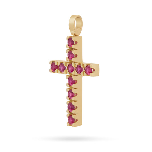Cruz Colgante De Oro Amarillo Con Rubíes