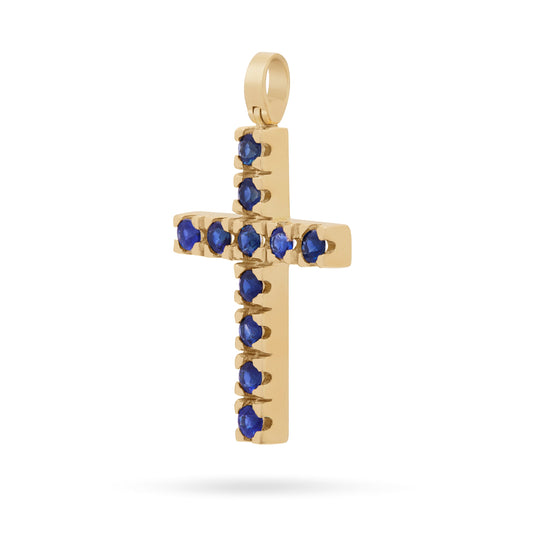 Cruz Colgante De Oro Amarillo Con Zafiros