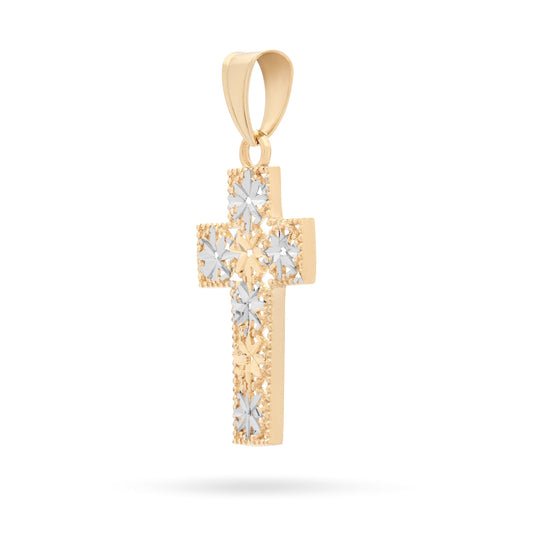 Cruz Floral Hueca Colgante De Oro Amarillo Con Puntos De Oro Blanco