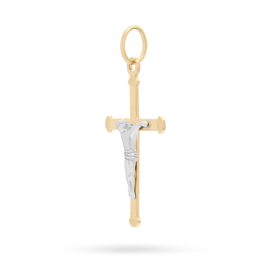Crucifijo Colgante De Oro Amarillo Con Cruz Levantada Y Corpus De Oro Blanco Estilo Moderno