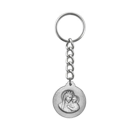 Llavero Ovalado De Metal Coloreado De Mater Ecclesiae Con Marco Decorado