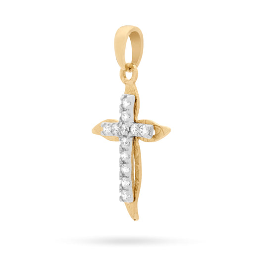 Cruz Ondulada Colgante De Oro Amarillo Con Centro De Oro Blanco Y Circonitas Cúbica
