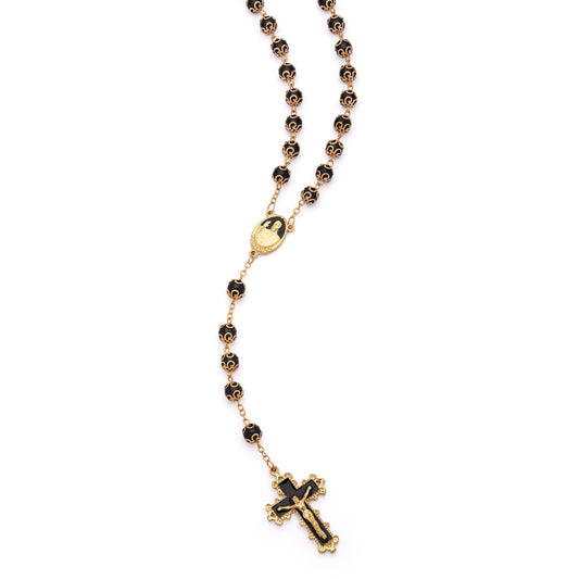 Rosario De Papa Francisco Con Cuentas De Cristal Negro Con Copetes