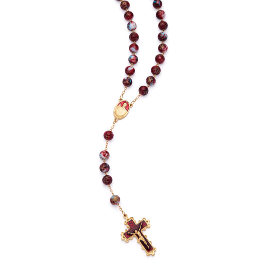 Rosario De Papa Francisco Con Cuentas Variegadas Rojo Oscuro Y Azul Claro