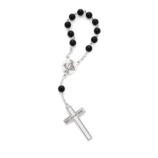 Rosario De Diez Con Cuentas De Ónix Negro Y Centro Y Crucifijo Esmaltados En Negro