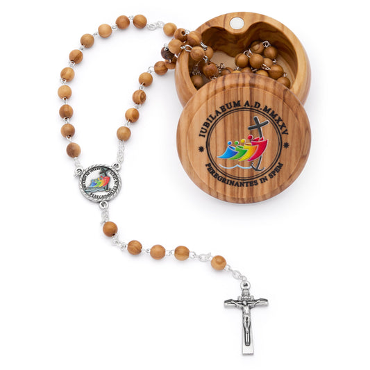 Portarosario De Madera De Olivo Tondo Del Jubileo 2025 Con Rosario De Madera
