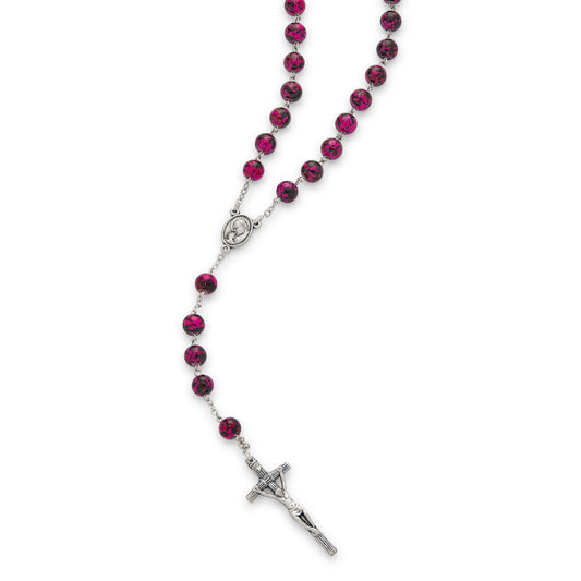Rosario De Papa Francisco Con Cuentas Variegadas Rojo Oscuro Y Azul Claro