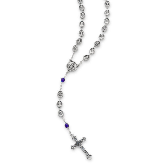 Rosario De Papa Francisco Con Cuentas De Vidrio Violeta Y Perla Sintética