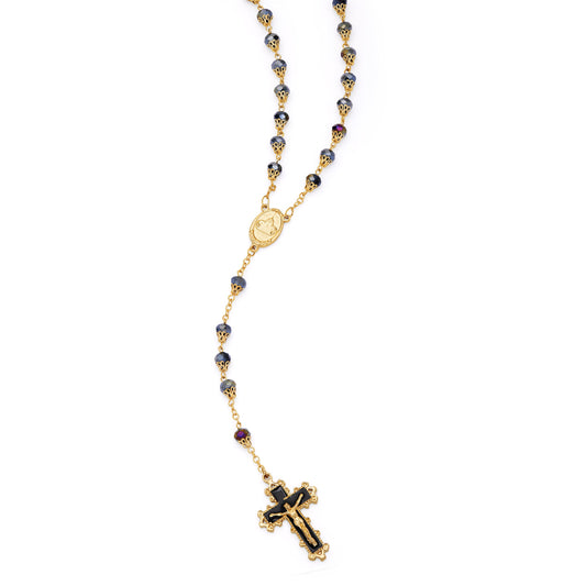 Rosario De Papa Francisco Con Cuentas De Cristal Negro Con Copetes
