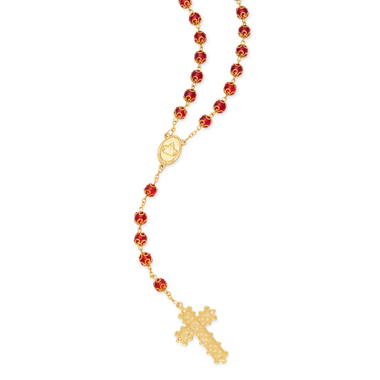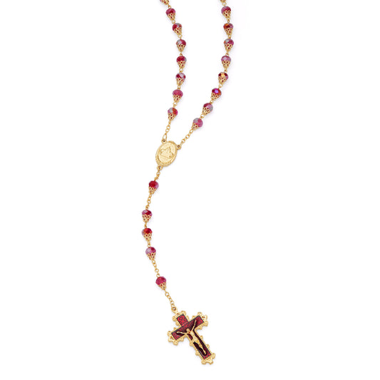 Rosario de la Sagrada Familia Cuentas en Cristal Rojo