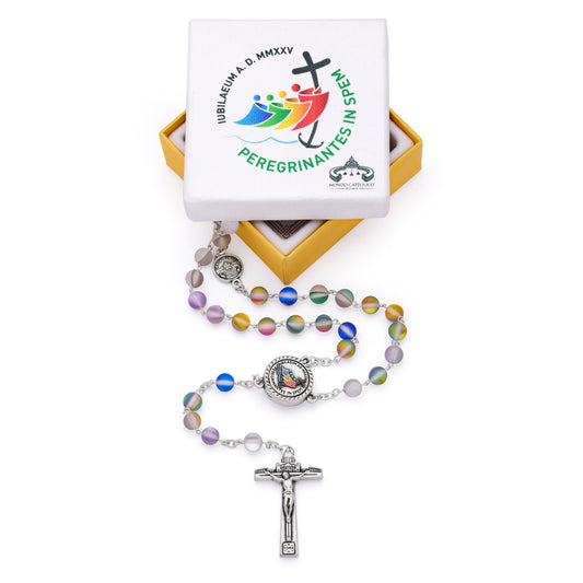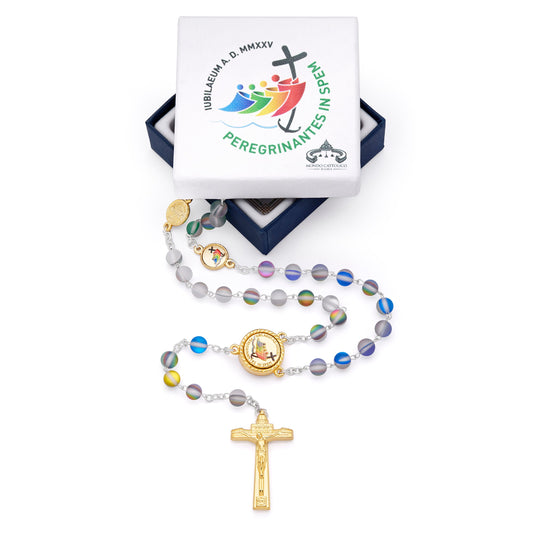Rosario Del Jubileo 2025 Con Cuentas Multicolor Mate Y Caja Azul