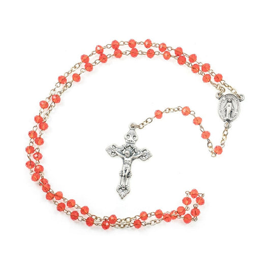Rosario con Virgen María y Niño con Cuentas de Vidrio Rojo Coral