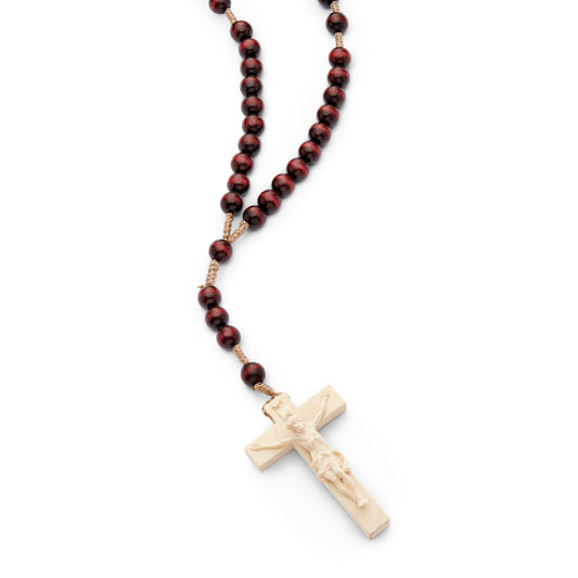 Rosario en Madera Natural Cuerda Crucifijo Tallado a Mano