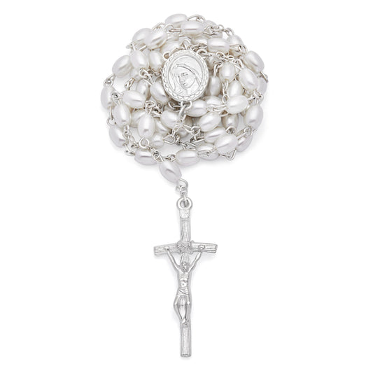Portarosario De Mater Ecclesiae En Forma De Cruz Con Rosario De Perlas Sintéticas Blancas