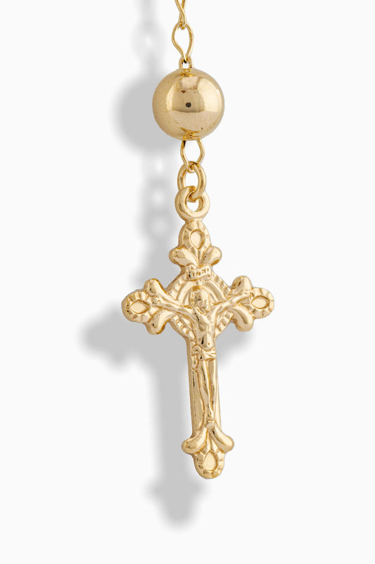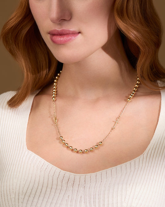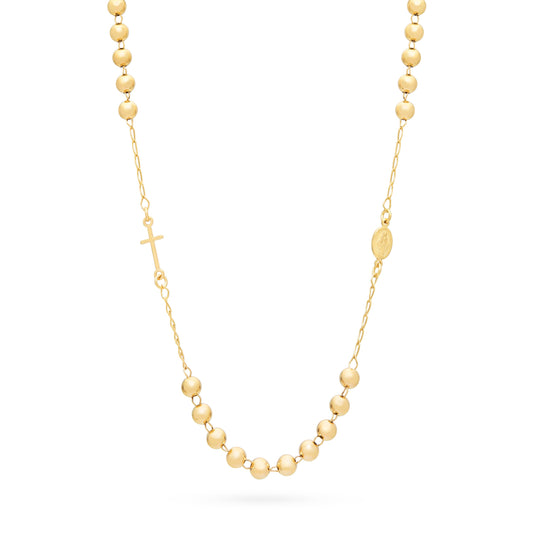 Collar Rosario De Plata Dorada Con Cuentas Grandes