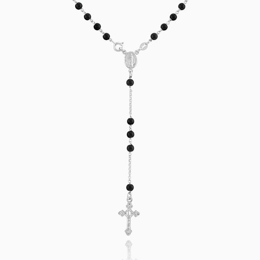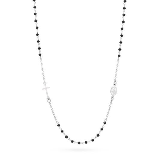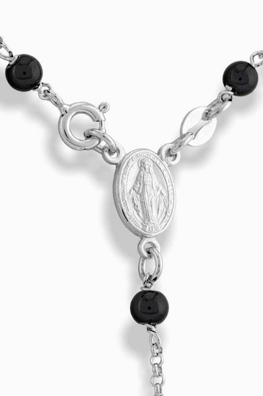 Collar Rosario De Plata Con Cuentas Negras Y La Medalla Milagrosa