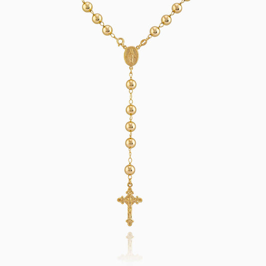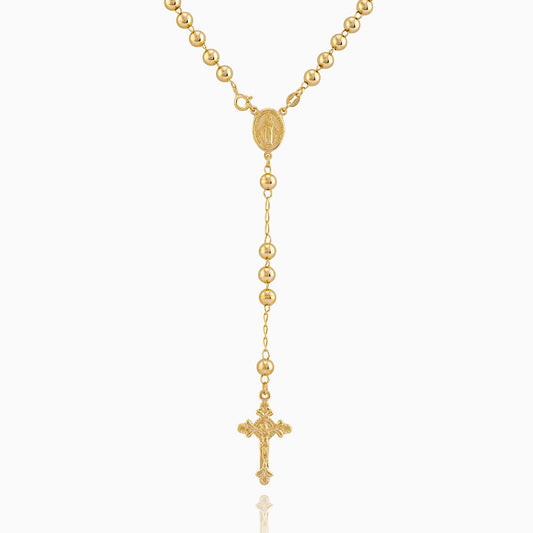 Portarosario Dorado Con La Virgen de la Medalla Milagrosa Y Rosario Con Cuentas en Forma De Rosa