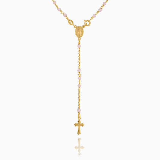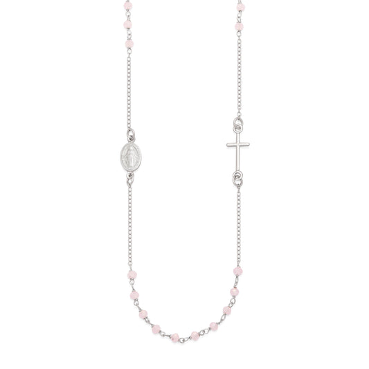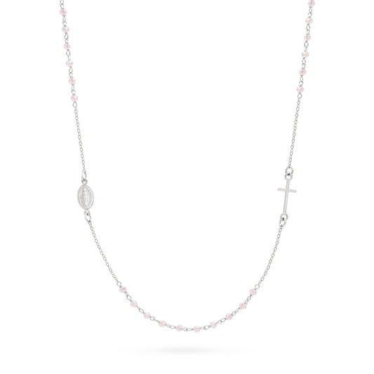 Collar Rosario De Plata Con Cuentas Rosa Claro