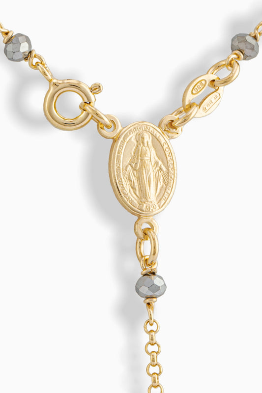 ROSARIO VIRGEN MILAGROSA DE PLATA CON CUENTAS DE HEMATITA