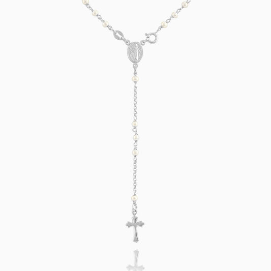 ROSARIO DE PLATA VIRGEN MILAGROSA CON PERLA SINTÉTICA