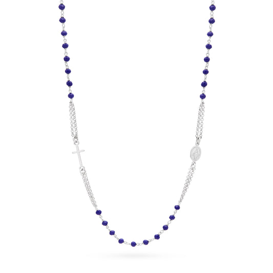 Collar Rosario De Plata Con Cuentas Azul Claro