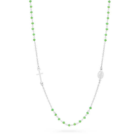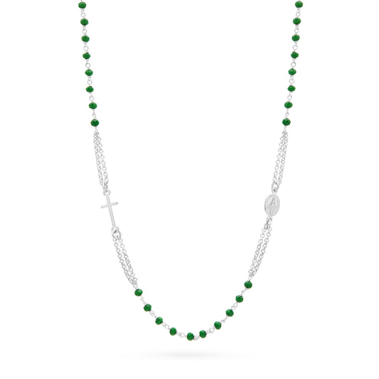 Collar Rosario De Doble Cadena De Plata Con Cuentas Verdes