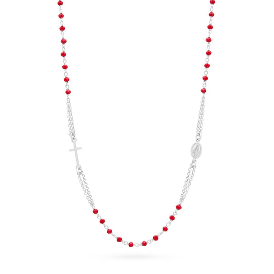 Collar Rosario De Doble Cadena De Plata Con Cuentas Rojas