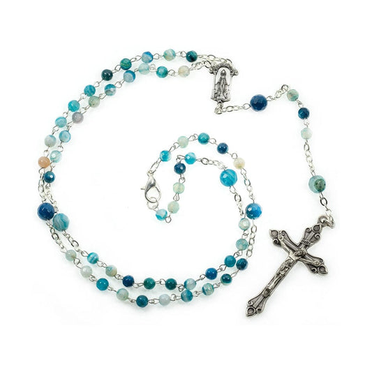 Rosario Plata de Ley Ágata Azul