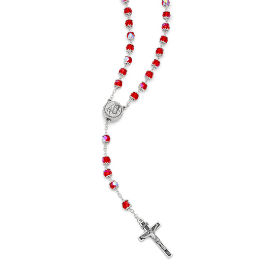 Rosario de Nuestra Señora de Lourdes Rojo con Relicario de Agua Bendita