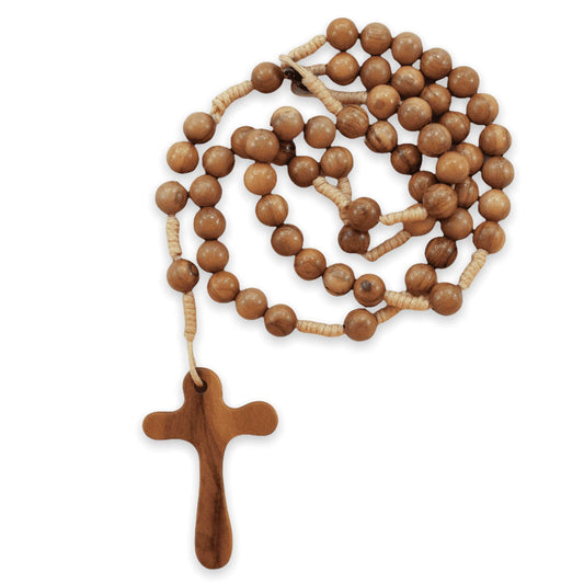Rosario en Madera Natural Cuerda Crucifijo Tallado a Mano